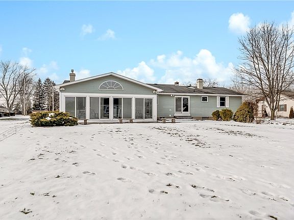 Impressive and MOVE-IN Ready 3 Bedroom, 1.5 Bath ranch home on almost an acre lot with no rear neighbors! Open floorplan features a large living room with hardwood floors that continue to the bright eat-in kitchen with loads of classic white cabinetry, double sink and oversized pantry with sliders leading to back concrete patio! Cozy family room includes a brick surround gas fireplace and modern wooden beamed ceiling with sliders to the awesome three season room with incredible views of the park-like backyard! 3 good size bedrooms with ample closets all freshly painted with brand new carpeting! Remodeled full bath with double sinks, white vanity and marble countertops, walk-in shower with subway tile surround, dual shower heads and extra storage! Convenient half bath near attached garage entrance. Full/partially finished basement with glass block windows, workshop, high efficiency gas furnace with air cleaner, central air and 5 yr old HWT. Woodburning Russell stove is an option to save on gas bills! BONUS detached oversized 2 car garage with attached shed storage! Architectural roof! STARPOINT Schools! Showings start ASAP! OPEN HOUSE SAT 12-2PM! *Offers to be in by Tues 2/7 at 6pm*