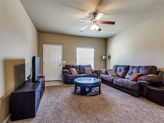 MULTIPLE OFFERS! BEST AND FINAL DUE MONDAY 3/16/20 AT 12:00PM. A very cute and well maintained, 1 owner 3 bedroom home that is located close to everything. This 3 bed 2 bath has carpet in the living and bedrooms, with tile in the kitchen, bathrooms, and utility area. 9' ceilings cap off the living room, which is open to the dining and kitchen. Bull-nose corners add a nice touch, as do the black appliances in the kitchen and ceiling fan in the living room. The master bedroom is separated from the other bedrooms by the hall, and has a large open master bathroom with stand-up shower. 6 person underground storm shelter is the garage. Fridge included with full price offer, washer/dryer negotiable.
