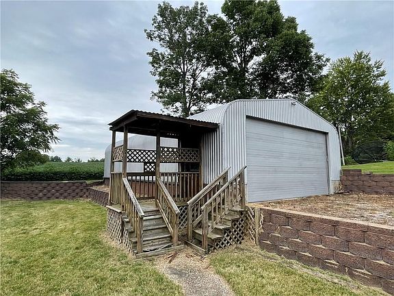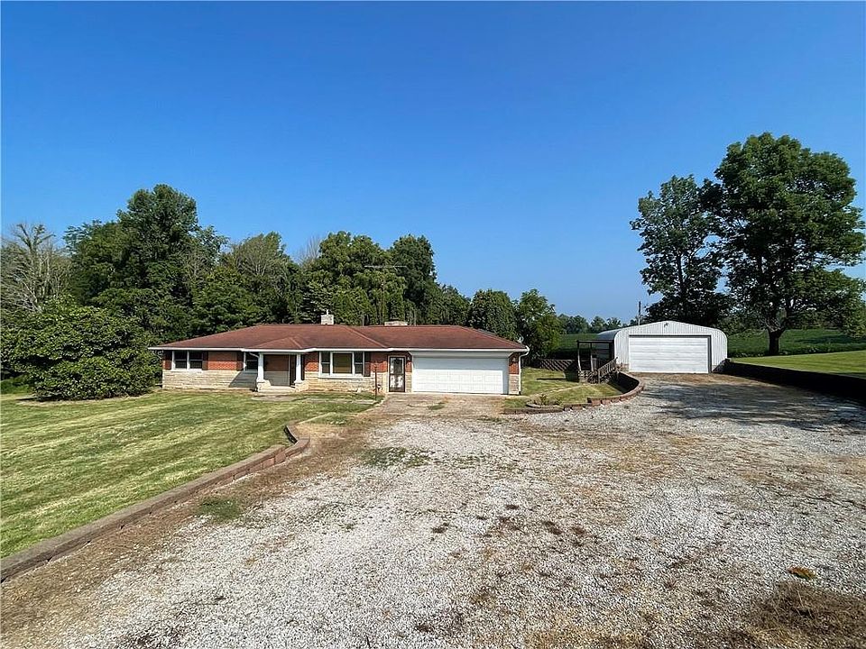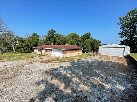 Great location on US 40, a quick commute for this 3 bedroom 2 full bath home. Secluded back yard overlooking fields, huge side yard bordering a woods and small creek. 2 car attached oversized garage with workshop, sink, PLUS a 24x42 barn for extra garage space, storage and workshop. Formal living room with large picture window and a large family room with vaulted ceilings, oak cabinets, floor to ceiling masonry fireplace with blower system. Eat in kitchen with 2 skylights, a dishwasher, and a pull out oak pantry, an informal dining room with large bay window, and an elevated formal dining room. The main floor has a utility room with a washer and dryer. Master suite includes walk in closet, full bath, dual vanity, shower, and linen closet.
