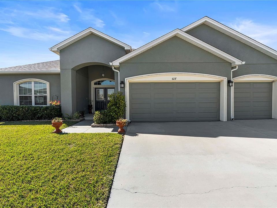 Enjoy family living at it's finest in this 5 bedroom, 3 bath, fenced pool home in gated Highlands Grace Community...a top rated school district, 10 minutes from downtown Lakeland and 5 minutes to Polk Parkway. 5th bedroom can easily be used as a home office. Upgraded white wood cabinets, granite counters throughout, wood-look ceramic tile and an open floor plan encompassing kitchen, family room, dining room, plus private den. Family room opens to sparkling saltwater pool with wading/sunning area and has removable child safety screen. Master bedroom is spacious with tray ceiling. Mater bath boasts dual vanities, a garden tub, private water closet, and walk-in closet with custom built-ins. Bathroom 3 doubles as a pool bath and is next to bedroom 4 for a private ensuite feel. Home is only 4 years old but has the look of brand-new construction. Why wait to build when you can move in TODAY?! Ready for your personal touches!!
