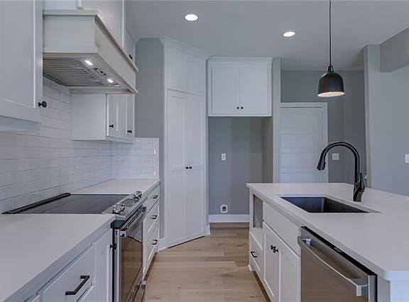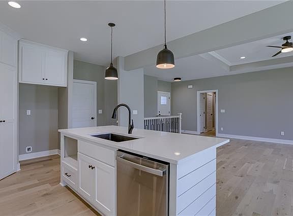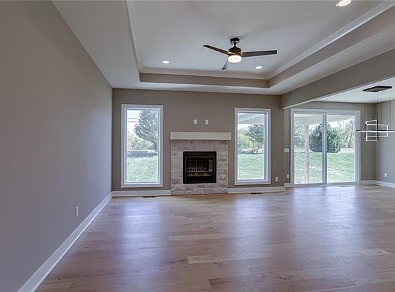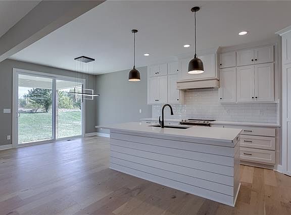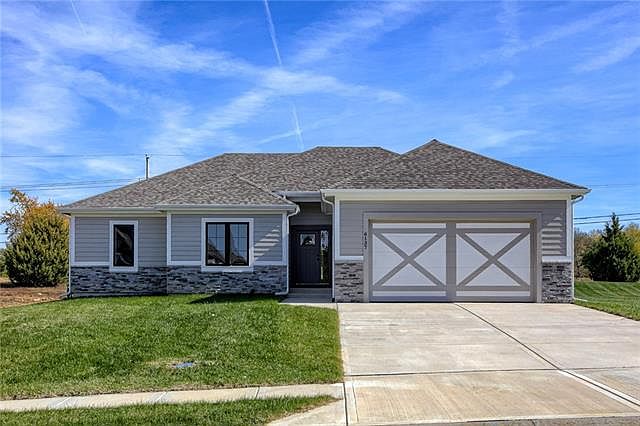 JULY 4TH SPECIAL!! RED, WHITE, AND BLUE FOR YOU!! NEW CONSTRUCTION NOW COMPLETED!! Fabulous Olympus Custom Homes 4 bedroom 3 bath Ranch with finished basement. Master bedroom suite features a upscale tile shower and jetted tub with a BIG walk in closet and access to the laundry room. Continuous upscale Hardwoods spread through the entry, great room, kitchen, eating and hall areas. The finished basement recreation room is large enough for MOVIE seating area as well as a game table area. The convenient bedroom and full bathroom in the basement make a great place for guests or family members. One Large unfinished storage area could allow for another bedroom which all that is needed is drywall, trim and paint! This area is already framed, wired, heated, and insulated (easy to make 5th bedroom if needed). Additional large unfinished storage area as well in the basement. No neighbors directly behind this home, w/ mature trees in the back yard and a covered patio to enjoy. Custom trim, upscale tile and custom cabinets, fun fixtures and much more. Situated in sought after Carriage Hill Estates with close access to everything KC!!