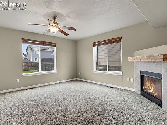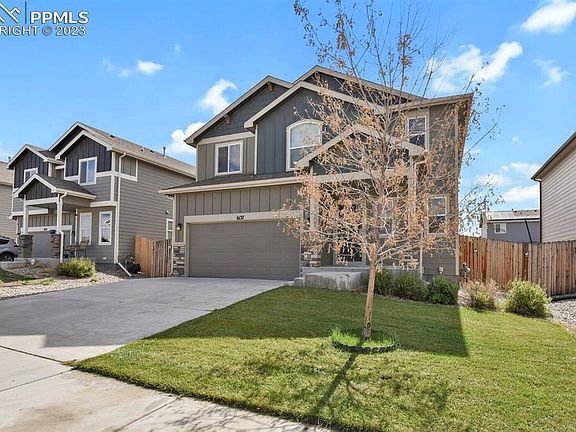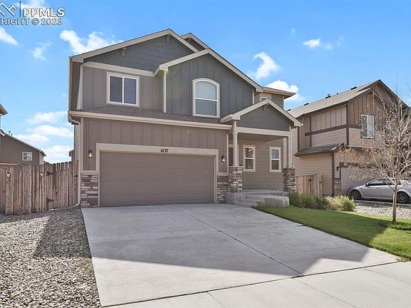 Welcome to this beautiful 2 story, Lorson Ranch property featuring fantastic mountain views, 4 bedrooms, 2 ½ bathrooms and an attached 2 car garage. The living, dining, and kitchen spaces are open to one another and create a spacious great room feel with sliding door leading to backyard. The open floor plan features a beautifully maintained interior that is bright and sunny and includes a neutral color palette, engineered hardwood flooring throughout the kitchen and dining spaces and an island, granite countertops, stainless steel appliances, and pantry in the kitchen. The master bathroom has a master bathroom with walk in closet and ceramic-tiled flooring. Landscaping in front and back with automatic sprinklers and well-established trees. The perfect location for outdoor fun. Conveniently set in a peaceful El Paso County neighborhood. A short drive to walking and biking trails, hiking trails, parks, bike paths, parks and playgrounds, restaurants, local shops, grocery stores, supermarkets and mixed-use shopping and dining areas.