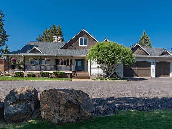 Conveniently located only minutes from Bend, and all of the great local services, shopping, restaurants is your personal 9.4 acre oasis nestled in the trees. The 2,397 sq ft open floor plan includes 3 large bedrooms 2 full bathrooms, a loft, and office. The primary suit is on the main level with privacy from the rest of the home. The freshly painted, updated home offers vaulted ceilings, natural light, and a warm ''at home'' feeling. Access is via paved roads to your circular driveway to the home and the 40'x40',1,600 sq ft heated shop with 30-amp RV plug in, 50 amp welding outlet, and ceiling fan; plus a 12'x40' open air, side wing for additional storage with 120v exterior outlets around the shop. Outside you will also find a covered wrap around porch, dog runs, storage shed and those 9.40 private acres. Enjoy sitting in your hot tub on the back patio listening to the central Oregon wild life. If you are looking for a quiet country life style close to town you do not want to miss thi