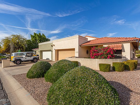 Welcome Home!!! This gorgeous 2 bedroom 2 bath golf course lot at the desirable Villa Royale in Mesa is in a fantastic location. Close to restaurants, shopping, schools, parks, multiple golf courses & easy access to the 202 Fwy. You'll love the layout of this home. Your kitchen offers stainless steel appliances, a breakfast bar & plenty of cabinetry for storage & organization. Your spacious master suite offers a plethora of natural light, a walk in closet, a vanity, along with a walk in shower & direct access to your backyard patio. This home offers a (newer AC unit, hot water heater, roof, exterior paint & golf ball security netting). As well as upgraded ceiling fans & lighting, a den/office to utilize, vaulted ceilings, a 2 car garage with cabinets for extra organization & a front security door for your privacy. Your low maintenance backyard offers a covered patio, mature landscaping & a view fence that looks out over the 7th hole of the Painted Mountain Golf Course. This gem in desert is a great buy & a must see!!!