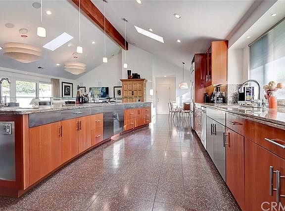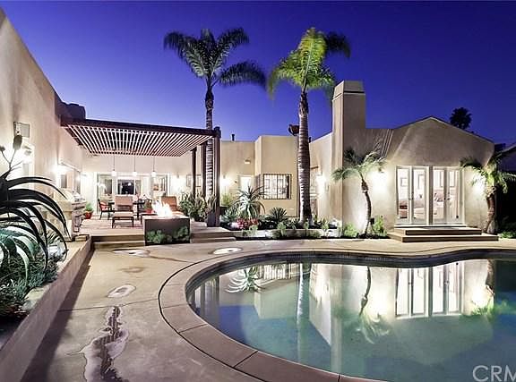This gorgeous remodeled single level home reimagined by the renown Mark Cutler, epitomizes modern mid-century design. Situated on a quiet 10,000+ SF corner, this home wraps around the rear court-yard and pool, with internal views of the patio and pool from most major rooms. Natural light washes over this elegant and demure floor plan. The great room ceilings provide a 14-foot vault and skylights that make this hub of the home dramatic, yet comfortable. Contemporary cabinetry, a massive glass breakfast bar, gleaming granite counters, a full array of quality SS appliances, a venetian plastered fireplace, and lustrous dark HW floors, highlight the space. The formal living room and dining room feel like a nostalgic step back, including a rock fireplace, and window seat. You can almost hear jazz wafting through the speakers integrated throughout the home, even when it's not playing. The 4 BRs are all spacious, and include 2 BRs that are nearly equal in stature with ensuite baths, dual lavs and luscious appointments. The master suite has its own stone fireplace, a sitting/exercise room, and has pool and courtyard views, complete with firepit, water feature, and latticed shaded area for al-fresco dining. There is nothing like this property available in Ladera Heights, which is quickly becoming the resurgent choice for the Silicon Beach crowd, just minutes away. The 2-car garage also has a full height storage loft. There is even a vegetable garden on the side of the house.