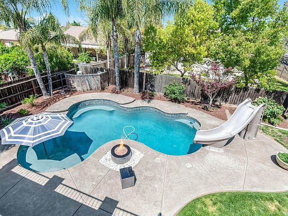 Both the family room and adjacent living/dining feature large windows and sliders to beautifully appointed back yard with covered patio, fire feature, and sparkling pool...just in time for summer entertaining!