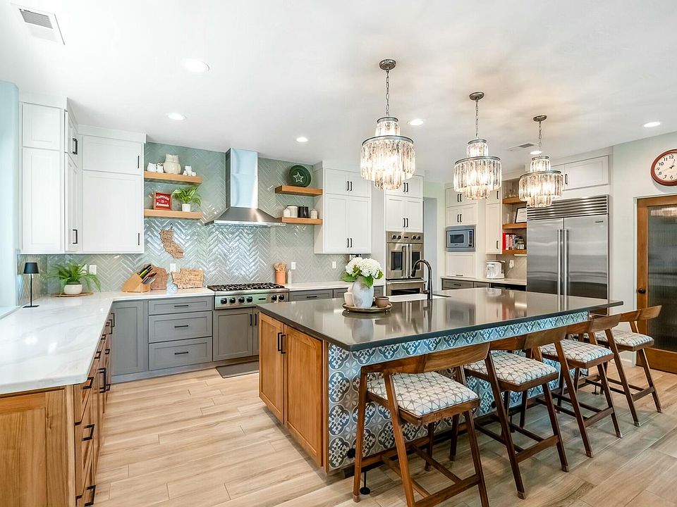 Stunning NW home now available! This gorgeous 6 bedroom, 4 bath home in Pheasant Ridge has designer-chosen luxury finishes, and a dream chef's kitchen. The gorgeous kitchen is open to lovely family room and features Viking appliances including a 6-burner stove, double ovens with French doors, two dishwashers, a warming drawer, microwave, Sub-Zero fridge, and a wine fridge, amidst amazing custom cabinetry, stone countertops, and large island featuring bar seating.