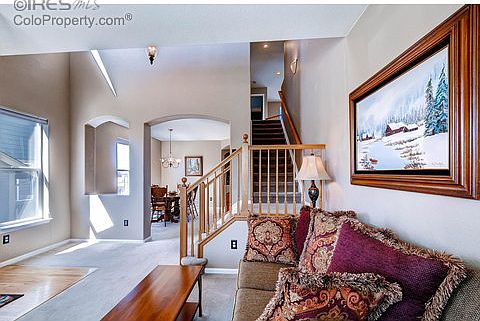 Pristine! Fabulous Ryland 2 story floorplan on established landscaped lot featuring high ceilings, lots of windows, and a very open floorplan! Kitchen has an island, 42" upper cabs & all appliances included. Excellent layout, 3 bedrooms upstairs and one in the bsmt with another full bath. Master is large with tray ceiling, a big walk in closet and a 5 pc bath. Prof fin bsmt is awesome with bar, big lv room and lush carpet! Nice pergola over patio and west facing with Longs Peak views. VERY NICE!