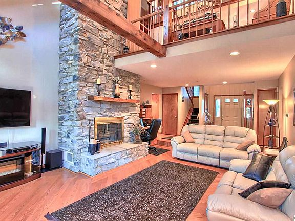 Breath taking contemporary in Lower Paxton in desirable Blue Meadow Farms boasting 20 acres of open space, walking paths and more! Quality 2x6 construction with cedar siding & el dorado mountain stone! Professionally landscaped 1/2 acre mostly wooded setting with patio and deck backs up to wooded open space! Features a great room with stone fireplace! Plus vaulted ceilings, skylights and lots of windows brings the outdoors in!