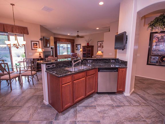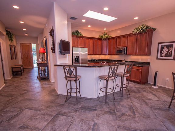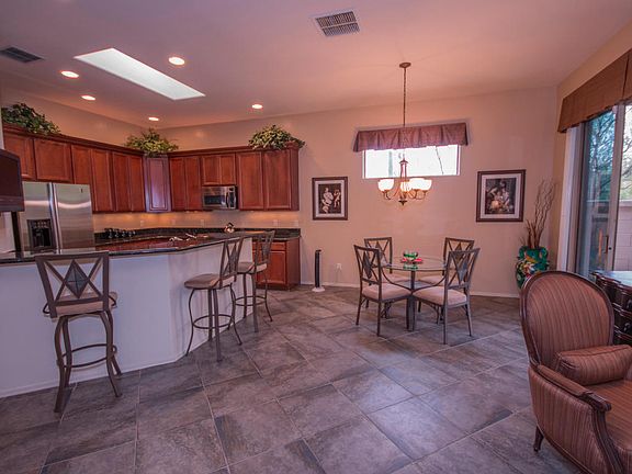 IMMACULATE home within a peaceful, highly coveted, gated community in the heart of Catalina Foothills! This Tuscan themed property is an entertainer's delight with an elegant great room with surround sound, soothing fireplace, sparkling ceramic tile flooring, & upgraded lighting in the kitchen, niche areas, & bathrooms. The Kitchen has sleek black glistening granite countertops, a breakfast bar, & stainless steel appliances convey upon purchase! The master suite includes ceiling speakers, a walk-in closet, separate tub & shower, & dual sinks! Enjoy your own private slice of paradise with a beautifully landscaped yard, covered patio with remote controlled sun-shades, flagstone, & wireless controller for the MASSIVE spool with 2 tranquil water features! This is an absolute MUST see!