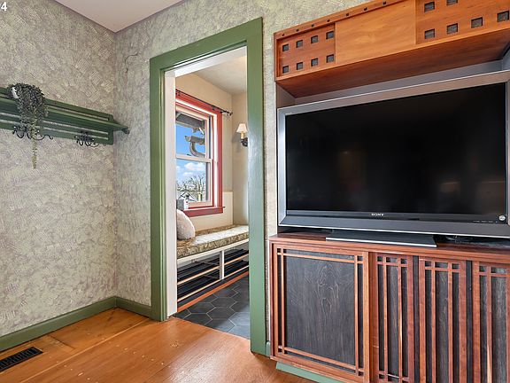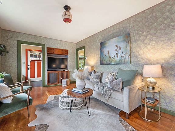 OPEN 2/11 12-2. Artists' Retreat! The cozy main bungalow with 2 bedrooms and 1 bath features wood floors and a welcoming, expansive covered front porch. Artistic touches abound, from custom-made banisters, railings, and cabinetry to decorative wall treatments. The separate studio with full bath adds flexibility and could serve as a dedicated artistic workspace, home office, 3rd bedroom, or even as guest quarters. The main house has a dry, heated unfinished basement, perfect for a home shop and providing tons of storage space. 2 skylights in each building flood the rooms with light. Lovingly-cared-for home with updated double-paned windows and doors, plumbing, electrical, siding, insulation, earthquake-resistant sheathing and seismic strapping. New hot water heaters in both house and studio in 2020. 95.5% efficient gas furnace. New gas stove in studio in 2021. Please do no adjust control settings for gas stove/fireplace in the Studio.
