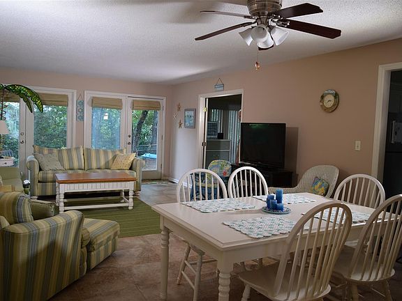 Adorable 3 bed/2 bath home walking distance/golf cart ride to beach! NO HOA, NO FLOOD INSURANCE required, situated on over-sized lot! Enjoy large bedrooms, granite counters & stainless appliances. 3rd bedroom may be utilized as Carolina room if desired. Spacious fenced-in backyard with grill area & room for large pool. Beautifully tiled & wood floored with open Great Room/dining area equipped with bar. Double French doors allow natural light & gorgeous views of backyard scenery & hand sculpted patio. Home is meticulously cared for & professionally decorated for the perfect beach experience including outdoor shower! 2 extra storage closets, coat closet & attached outside storage for all your needs! Master suite has large walk-in closet while 2nd bedroom boasts unique walk-through closet. Additional dinette area in kitchen. Large laundry room has closet, ironing station & cabinetry. Your new beach home truly has it all & is calling your name....