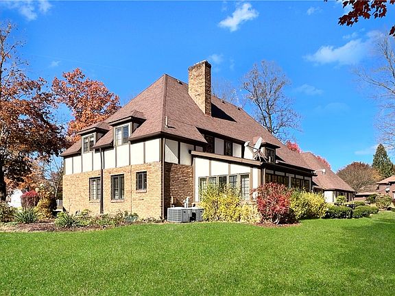 Unparalleled distinction and enviable elegance radiate from this architecturally intriguing custom-built Normandy Tudor displaying a commanding presence in an established upscale neighborhood. The masterfully appointed exterior showcases enduring Tudor architecture. Sophistication and grandeur emanate from the alluring turret entry flaunting marble flooring and curved staircase. A sunken living room steps up to a formal dining room accompanied by built-in china cupboards. Expansive eat-in kitchen showcases hardwood flooring, abundant cabinetry, Corian counters, recessed lighting and dining area with bay window. A timber beamed ceiling and brick fireplace add a touch of rustic flair to the spacious family room. Exquisite owner’s suite is accompanied by a private nook and a spa-inspired bathroom accompanied by walls of mirrored closets, his and hers sinks, Corian counters, and oversized granite shower. Upstairs hosts 4 bedrooms and 2 full baths. Finished basement, sunroom, brick patio.