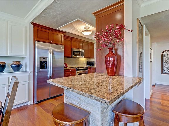 WOW, VIEW OF ALISO CREEK FROM LIVING ROOM AND WRAP AROUND BALCONY, This is truly an Upscale, Turnkey Gem! Remodeled, So many Upgrades in every room! Let's start in the Open Concept Elegant Kitchen, with beautiful Granite Counters, Travertine Backsplash, and Maple Color Cabinets. Dining Room displays a Built-In Lighted Buffet Cabinetry System with lots of storage space. Cozy Living Rm with Real Wood Burning Stone Fireplace, Built-In Wall Unit with Shelves & Cabinets for more storage, and Built-In Surround Sound System. Walking down the Hallway, stop and mix yourself a drink at your very own Built-In Wet Bar. Master Bdrm has Privacy Glass Door, His & Her Closets, and an exquisite Walk-In Shower. Guest Bath includes a Jacuzzi Jetted Bathtub surrounded in Travertine stone. Inside Laundry Room has side-by-side WASHER AND DRYER, which are included in this sale! If that's not enough, this home has CENTRAL HEATING AND AIR, Crown Moulding, Recessed Lighting, Textured Ceilings, Newer DBL PANE Interior Doors, Windows, and Slider. Flooring is Engineered Wood and Tile throughout. Laguna Woods amenities surpass all expectations, 27 hole championship golf course,9 hole executive par 3 courses, tennis, paddle tennis, lawn bowling, 2 fitness centers, 7 clubhouses, 5 swimming pools, equestrian center, gardening opportunities, art studio, world-class wood shop, over 200 clubs and organizations ensure you will never get bored here! Plus free bus transportation around the community and nearby shopping and bus trips. Also there is a very economical RV storage area to park your RV, Country club living at it's BEST and just approximately 6 miles from beautiful Laguna Beach!