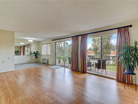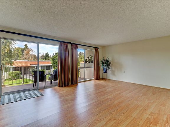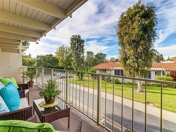 55+ Community! 2BD/2BA "Castilla" co-op just a short walk to the Aliso Park and Nature Preserve entrance. You'll also enjoy a view of the creek entrance off to the side of your balcony set up above the homes below with a very quiet and short dead end street below the balcony. This spacious floorplan features a nice separation of space - no need to walk through your living room to enter bedroom areas and easy access to kitchen (see floorplan in supplements). Entryway has 8 steps down to the front door and you are greeted with wood laminate flooring throughout the hallways and living room. The bright living room area enjoys northern exposure (and bedroom windows face south), lots of windows plus a sliding glass door leading out the balcony. Dining area and kitchen have water resistant flooring and a mostly original kitchen with added dishwasher and GE appliances that are maintained and replaced by the HOA. The guest bedroom features a space-saving Murphy Bed for your guests. The large, adjacent guest bathroom houses a tub/shower combo and lots of counter space. Your master suite included lots of closet space, wall air conditioner and bathroom area with privacy door to separate the vanity area. BRAND NEW STACK WASHER/DRYER being installed!! Laguna Woods Village features affordable golf on two championship courses, a new starter clubhouse with cafe, bar and pro shop. There are horse stables, tennis courts, pools, gyms, theatre, library, clubhouses and over 200 clubs!