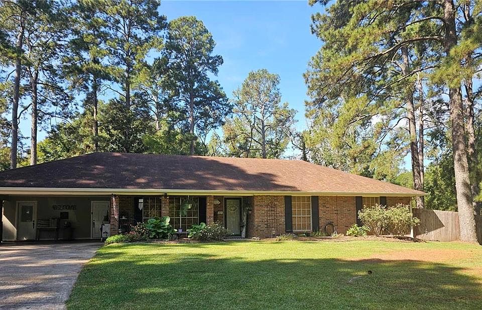 This home features 3 bedrooms and 2 bathrooms, along with an office that includes its own private entrance. Situated just beyond the city limits, this home is nestled in one of the most sought-after neighborhoods in Pineville. The property spans nearly an acre and includes a 30×16 workshop equipped with electricity and ceramic tile flooring. The spacious covered patio is the ultimate spot for hosting gatherings, while the expansive landscaped backyard provides a picturesque backdrop.