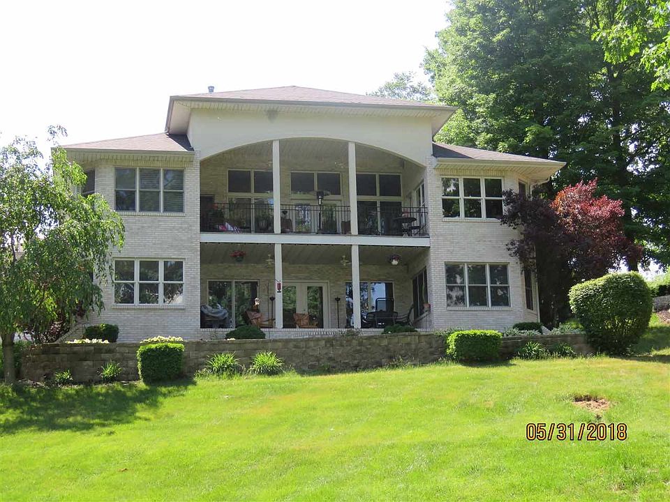 Awesome entrance to this stunning Lake Freeman home with all of the amenities AND ciity water + sewage. Minutes walk to downtown, shopping, churches, restaurants! A short boat ride to the Sportsman Restaurant. A golf cart ride away to private waterfront and view. Great room expands to an open kitchen, dining areas + double doors to the veranda with a great view! Expansive master suite with a lake view, sitting area,fireplace, decorator bath, walk-in closet, and laundry area. Full lower level walks out to the 2nd veranda on the water side. Lower level includes bedroom with full bath, laundry room. open rec, media area, unique wet bar, sitting nook, and tons of storage including golf cart parking area! At waters edge there is perm elec boat lift and 2 wave runner lifts + large lounging deck and rip rap seawall. Bose sound system inside and out. sprinkler system, 3 fireplaces, 115' of frontage. New 6" hardwood floors in great room and master bedroom. Asphalt golf cart drive to lake. Total of 3753 Finished sq. ft. and 1250 unfinished. City water & sewer, private culdesac & close to town. Note: Stained Glass windows will not stay.