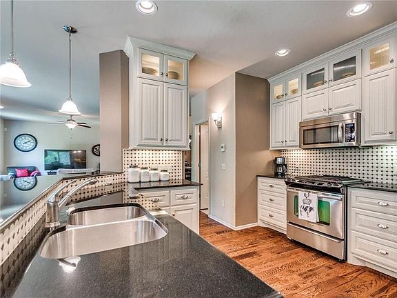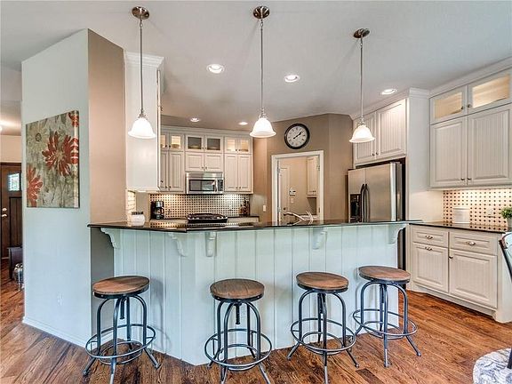WELCOME HOME! This beautiful 3 bedroom, 2 bathroom home is located in North Edmond, east of I-35, near Lake Arcadia. It's considered to be one of the most desirable lots in Arbor Creek! You will feel like you're at a resort when you step out the french doors on to a large deck featuring an outdoor fireplace and pergola. This adorable craftsman home is located in a cul-de-sac and backs up to a treelined greenbelt that offers complete privacy in your backyard. It has a unique layout with all of the bedrooms upstairs and living space downstairs. The master has a ceiling fan and an ensuite bathroom with double vanity sinks. It also features all the upgrades you could hope for including granite counter tops, wood floors, built-ins, plantation shutters, a private balcony off the master bedroom, storm shelter, sprinkler system, etc. Landlord checks credit and criminal history. $30 application fee per adult resident. Authorized pets welcome, with a $250 per pet (non-refundable) pet fee. Limit two. NOTE: Security deposit is $2,150 and is refundable at the end of the lease term. Tenant will also be charged a one-time Lease Setup Fee of $50. Actual address of the property is 616 Blue Oak Way