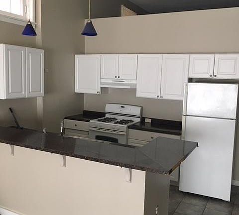 Upgraded Finishes Multi-Level Apartment with High 12'-0+ Ceilings Master with adjoining "Home Work Area" Kitchen with large Peninsula/seating Living Room/Kitchen/Dining - Open Plan Hardwood Floor and wall-to-wall Carpeting Large Bath Private Storage Area Central Laundry Located on major bus route Walking Distance to Local Shopping District On-Street Parking No Pets. No Smoking. Tenant responsible for Electric and Cable/Internet. Gas heat, trash removal and water by Landlord.
