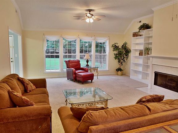 - LIVING ROOM DESC: Carpet, Fireplace, Crown Mold, Ceiling Fan