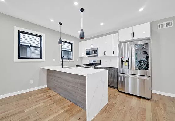 For further Information/showings please call or text Gabriel - 347-419-5268 614 east 37 Street, the rare gem you have been searching for! Newly renovated sunny & bright 18x65 built two family townhouse offers high end finishes, classic details, modern technology, driveway & Two car garage. Yes you read right, parking in burgeoning East Flatbush. This meticulously renovated townhouse will captivate you from the moment you arrive with its warm and welcoming energy. Looking for space, plus income generating rental property to assist with mortgage payments? Your search ends here, come explore all the possibilities of 614 east 37 Street. Configured as a 3 bedroom 2 bath rental unit which has the ability to produce $3,500/month to assist with mortgage payments over a 3 bedroom 2 bath garden unit, plus a high ceiling full finished basement with both private street level entrance & interior access. With its unique setup the garden unit and walk in basement can easily be transformed into a garden-basement duplex, or can be used as a playroom, home office, studio, media den or storage space. Both units enjoy expansive sun drenched living/dining areas which provide great space for entertaining. Chefs inspired granite kitchens featuring floor to ceiling custom cabinetry, boast full sized stainless steel appliances & equipped with island for bar stool seating. Spacious bedrooms with ample closet space as well as a master suite with private en suite. Fully tiled bathrooms boast state of the art wall & floor tiles and much more! Must see to appreciate. 614 east 37 Street has been fully gutted & remodeled by an expert team of contractors and designers featuring select wide oak wood flooring, central HVAC systems, recessed lighting, smart home systems, brand new electrical, heating & plumbing systems throughout. This masterfully re-imaged townhouse is located in the heart of East Flatbush. Just moments away from major transportation which makes commuting a breeze, schools, shopping centers, highways, restaurants, cafes, parks, Clarendon Road, Foster Avenue, Brooklyn Avenue, and many other vibrant neighborhood amenities.