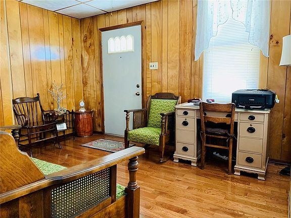 Come view this exceptionally well maintained 3 bedroom 1 bath home. After you are welcomed by the large covered front porch, you will enter the home office that leads to the formal dining room, living room and kitchen. The newer hardwood flooring on the main level continues onto the second floor where you will find three bedrooms and a spacious full bath. Other newer updates include exterior painting, central air, a Canadian oak staircase and updated wiring. You will appreciate the two garages whether you enjoy working on cars or just simply storing your vehicle.