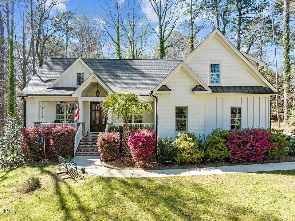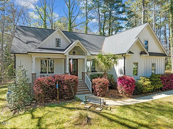 Welcome to your custom coastal inspired haven nestled on 2 wooded acres in downtown Fuquay-Varina. With nearly 2,700 square feet of living space, this energy-efficient home offers an array of features that cater to both comfort and style. Upon entering through the mahogany double doors, you'll be captivated by the soaring 10-foot ceilings that enhance the home's spacious feel. The inviting family room's built-in bookshelves and gas fireplace set the ambiance for cozy relaxation, while heavy trim work and upgraded lighting elevate the living spaces. The kitchen features stainless steel appliances including a microwave drawer, quartz countertops, under cabinet lighting, and a huge center island with farmhouse sink. A pull-out pantry adds practicality to the space while a decorative fire back adds historic charm . A large dining room is the perfect spot for get-togethers and the breakfast nook offers a more intimate space. Retreat to the main floor primary bedroom, complete with a walk-in closet featuring built-in shelving. The ensuite bath offers a luxurious make-up vanity, separate shower, and exquisite tile work. Additional highlights include hardwood oak flooring on the main level, screened back porch, a fenced yard, and an oversized side-load 2-car garage. There are 2 additional bedrooms and 1.5 bathrooms on the main floor. Upstairs you will find the 4th bedroom and third full bath, plus a loft and 2 generously sized walk-in attic spaces with an abundance of storage. Living in the downtown area of Fuquay offers access to a plethora of amenities...from restaurants and shopping, to theater and arts facilities, to playgrounds and dog parks, there's something for everyone to enjoy just a short stroll from your front door.