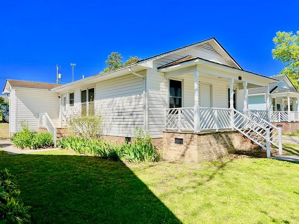 Perfectly functional modern ranch home in Crewe! This three bedroom, two full bath home has just been refurbished with new flooring and paint throughout! Step in to the living room and immediately notice the brand new plush carpet and fresh paint throughout the home! The living room is large and accommodating and you can enjoy your favorite shows from the dining area! The kitchen features ample cabinet and counter space as well as room for other kitchen furniture. The primary suite boasts a bedroom large enough to accommodate you kingsized bed as well as the rest of your bedroom set and the ensuite full bath is very convenient. The remaining bedrooms are also large. The home is is a superb location for travel, right on route 460 just minutes from Blackstone and Farmville. Route 360 is also just a couple miles away for travel to Richmond. Enjoy the conveniences of town living including municipal water, sewer, and trash removal as well as high-speed internet and cable TV. Make plans to see this home today! Sold AS IS.