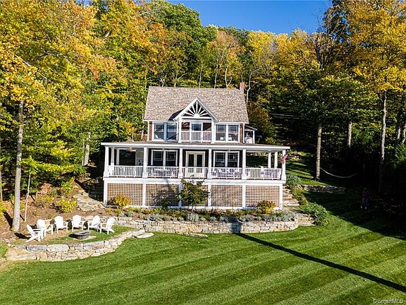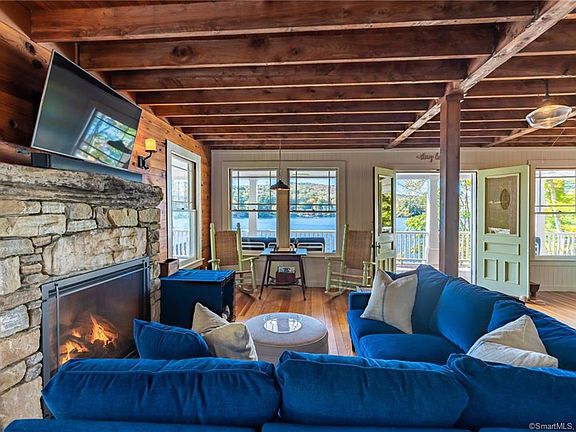 *Highland Lake Waterfront Compound* Spectacular views and access to the beautiful clean waters of Highland Lake, a 444-acre boating lake, in the town of Winchester, Litchfield County CT. The property was meticulously renovated in 2016 by Third & Bay Design. Every detail was thoughtfully executed, from the main house, the guest house, to the original boathouse (one of only 5 original boathouses on the lake). The open floor plan and spectacular wrap-around porch on the main house affords unobstructed breathtaking views of the lake. Enjoy new appliances from Big Chill in the state-of-the-art retro kitchen, new bathrooms, fieldstone gas fireplace, security system, and new mechanicals. The camp-style property layout enjoys a main house, guest cottage with a porch and spectacular lake views, basketball court, and a boathouse having its own spacious deck and dock. Situated on the desirable east side of Third Bay, the property enjoys sun all day and unforgettable sunsets. With 100' of lake frontage, there is plenty of room for private swimming and boat/recreational toy docking. Outdoor amenities include beautiful stone walls accompanied by professional landscaping, as well as a substantial level lawn and raised stone fire pit for entertaining. Indulge your guests inside or outside the boathouse, relax on the expansive porch overlooking the water, or hang out in the picture-perfect guest house. What an incredible opportunity to own your Dream Waterfront Luxury Lake Home!