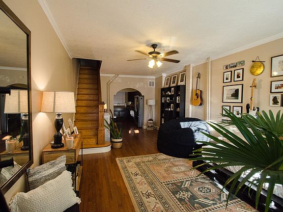 Beautiful brick 2BR/2BA porch front row-home in Brewers Hill! New bathroom and large eat-in kitchen, separate dining area, hard wood floors throughout. Two full baths, two bedrooms, with the third bedroom made into a huge walk-in closet. Gated, covered front porch, and covered rear patio. Central air, full size LG Steam washer and dryer, new stainless steel appliances and tons of storage space! Take advantage of this GREAT location...close to everything. Walk to Canton Square and Canton Crossing. No smoking, but pets are certainly welcome!