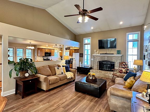 Discover the allure of this 6 bedroom Ranch home, where spaciousness and rustic charm blend seamlessly. An inviting Front Porch and a welcoming Foyer set the stage. The heart of this home is the Great Room, featuring a stunning Brick Fireplace and soaring Vaulted ceilings. Original Hardwood floors in the Foyer, Kitchen, Dining room and Laundry room, exude character and warmth. Three generously sized bedrooms on the main level, include a Master Suite with a Whirlpool Tub and Dual Vanity. The third bedroom, featuring elegant French Doors, can also serve as a cozy Den. The lower level offers a world of possibilities. An expansive Family room provides ample space for gatherings and relaxation. Three additional Bedrooms, a Full Bathroom with a dedicated Vanity room, an additional Laundry room, and a secluded Office ensure that your every need is met. With a touch of tender loving care, this home has the potential to truly come to life. Entertain in your generous Backyard, complete with a charming Deck, mature trees, including fruit trees, and outdoor Storage area. A heated, extra-deep, 3-car garage with pull down access to overhead storage, and a 6+ car concrete Driveway add to the appeal. The addition of Hardy plank siding provides durability and curb appeal. Being Sold As-Is. Don't miss the chance to transform this hidden gem into your Dream Home.