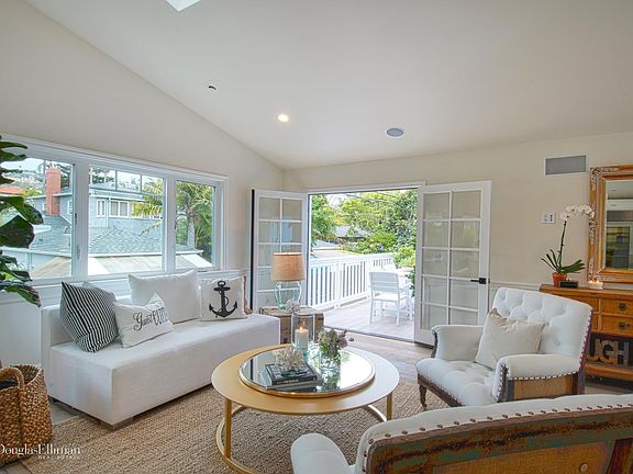 614 Glenneyre offers an elegant blend of timeless sophistication and contemporary vision, embodying the casual, California coastal living, and is one of the most exceptional properties in Laguna Beach. This exquisite 3-bedroom, 2,573 sq. foot, newly constructed residence is complete with terraces overlooking the city and with indoor/outdoor living. Curated finishes include wide plank European oak floors, custom light fixtures, and stainless steel appliances by Subzero and Wolf. Downstairs boasts a sumptuous, formal living room, accentuated by a dramatic and antique fireplace and exposed wood beam ceiling, while the adjacent kitchen and family room is highlighted by custom cabinetry and a large, quartz slab kitchen counter. Included is an 834 sq. foot, independent guest home, with two bedrooms and two bathrooms, and with panoramic views of the city skyline. A private courtyard, large decks, and access to dual, double garages complete this truly amazing residence. This is urban living at its finest.