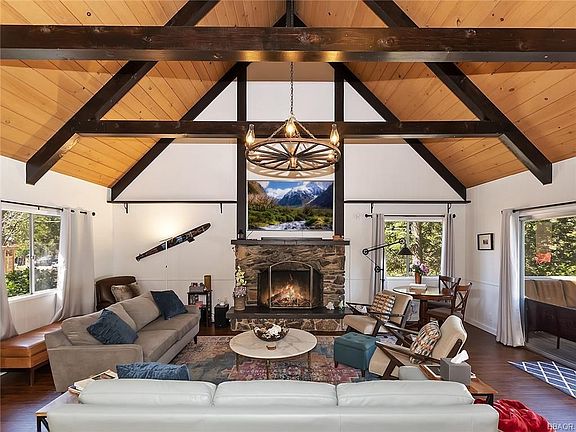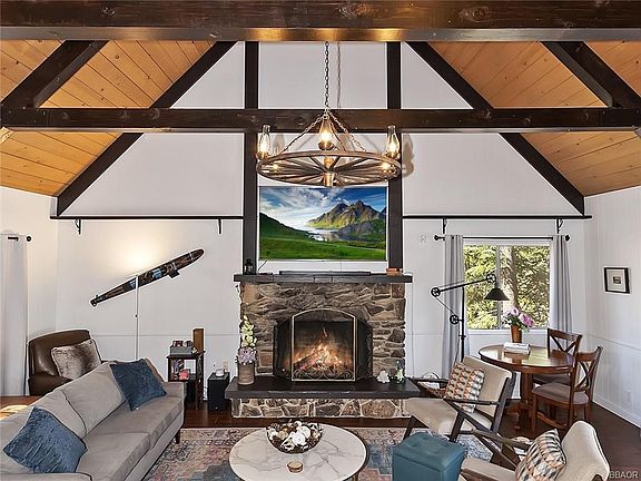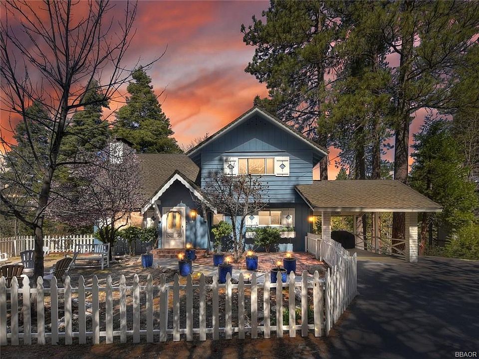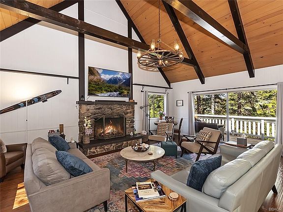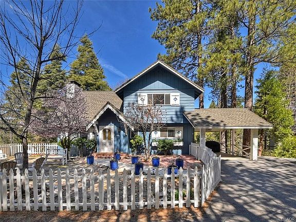 This turn key Lake Arrowhead charmer is a polished gem. A picket fence frames a rare level front yard, complete with fruit blossom trees, to enjoy in the summertime and for building snowmen in the winter. Walk through your front door into a grand mountain lodge living room with high cathedral beams and an updated kitchen with white quartz countertops. 1 bedroom and bath, along with a deck to enjoy the forested views, complete the main level. Upstairs you'll find 2 more bedrooms and bath, as well as a reading nook overlooking the great room. Downstairs is a knotty pine family room for that cozy cabin feel, a bonus room used as a 4th bedroom, a 3rd bathroom with laundry and access to an outdoor patio area. Several upgrades throughout include a tankless water heater, copper piping and Nest & Ring Alarm System. Sitting on a 18,000 sqft forested lot this exceptional property has it all-including full lake rights-and is ready for you to enjoy all that beautiful Lake Arrowhead has to offer!