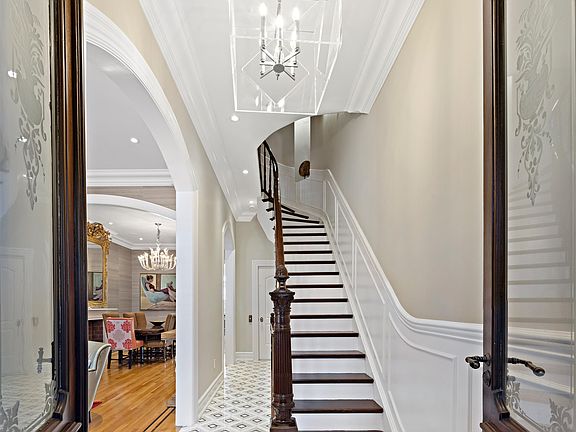 Located on Hoboken’s most coveted street, this historically protected redbrick townhouse has been methodically restored, redesigned and renovated to include all the essentials of modern living while maintaining the splendor of yesteryear’s magnificent turn of the century mansions. Located in Hoboken’s premier location, this house is a short distance from the PATH Train, NY Waterway Ferry to Manhattan and Hoboken’s finest restaurants. 614 Hudson Street is the perfect combination of timeless sophistication and 21st century living. Gut renovated in 2017, truly no expense has been spared in the restoration and expansion of this magnificent home. The original red brick and brownstone façade has been meticulously refurbished and showcases the timeless historical beauty that is impossible to replicate. The grandeur of this home is immediately evident as you enter through the ten-foot-four inch-high original 18th century Argentinian double entrance doors (with matching Nuns carved into the oak), followed by the interior nine-foot-three inch French double wide doors originally from Paris dating back to the 19th century. Every detail of this home has been carefully considered as to protect the enduring history of the home while balancing the modern amenities desired by today’s discerning buyers. 614 Hudson Street is a two-family home situated between Hudson Street and Court Street on a 20x100 lot. The main home, with the entry on Hudson Street, encompasses 60x20 and has approximately 5600 square feet over five stories plus a roof deck with six bedrooms, seven and a-half baths, two living rooms, a study, two dens, office, media room and an award winning Primary bathroom. This home is exquisitely designed with custom cabinetry throughout, elegant custom millwork, hardwood floors and designer finishes. Several noteworthy features include an elevator that serves all five levels of the home, a carriage house with a standalone loft apartment with a separate entry on Court street, a private garage with room for two cars, high velocity air conditioning, high efficiency hot water with two 120 gallon hot water tanks, central vacuum, a natural gas generator that backs up the entire home and Control4 smart home system which includes: six exterior cameras, video entry/intercom, automated shades and lighting controls in key areas and 16 media zones throughout the property. Both the main house and carriage house are spray foam insulted with high efficiency lights resulting in extremely low utility bills.