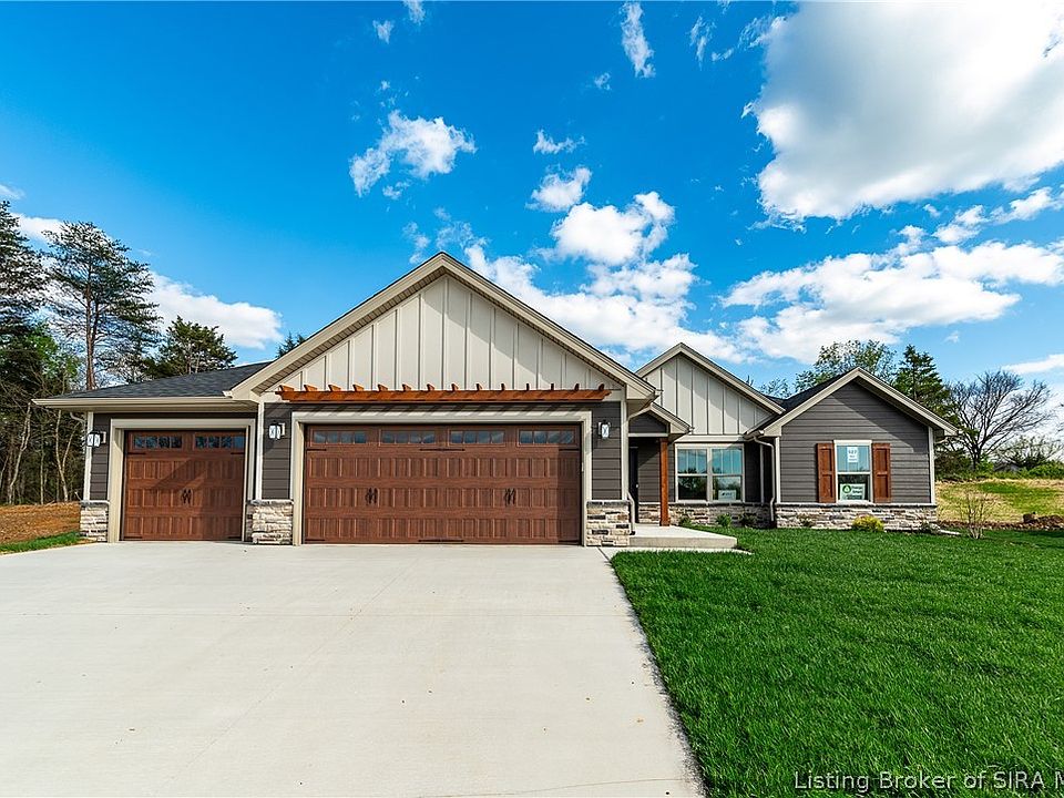 Welcome to Kingsland Fields! Featuring The "Allen" Plan QUALITY built by ASB! Not only does this one have an awesome culdesac lot with wooded backdrop, but it offers an incredible curb appeal and 3 CAR GARAGE! This is a WIDE OPEN floor plan perfect for every occasion and offers 10 ft smooth ceilings, recessed lighting, LVP "life proof" flooring, dining area, and gorgeous kitchen with breakfast bar, quartz or granite counters, corner pantry and sleek cabinetry. All bedrooms are a great size including the owners suite for which offers 2 Walk in closets, separated double vanity with granite or quartz and a stunning CUSTOM TILE shower! This home is ENERGY SMART RATED and RWC Structural WARRANTY provided at closing. Kingsland Fields is only minutes to I65 and approx 10 minutes to Louisville! If this one doesn't fit your needs, consider one of ASB's other developments at Fairview Farms, or Hawthorn Glen!