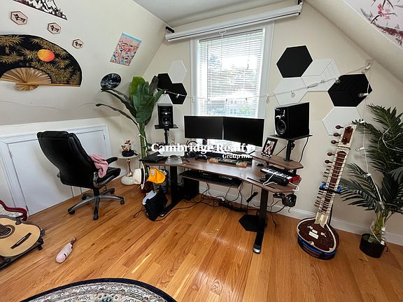 A luxury 3.5 bedroom / 2 bath apartment on the Medford / Somerville line. This is a spectacular apt: brand new construction, there are no rentals out there like it!! These are 3 full bedrooms, one bedroom has a large office adjacent and another has a 20' long walk in closet. 2 bath, 1 has a Jacuzzi and other is an en suite with a walk in shower! Large open plan kitchen and living room with high ceilings. Living area is on 2 levels. 1 bedroom has an office attached to it; another bedroom is about 20' long with 2 skylights, large en suite bathroom with a walk in shower and a walk in closet. Kitchen has skylights also. All floors are hardwood, private deck, Central AC and laundry in unit. Both bedrooms have large closets (6 feet +) and a closet in a hallway. - Central AC - New heating and hot water system (gas) - New windows - HW floors throughout - All new appliances - Private deck - Gas stove - Dishwasher - New kitchen, maple cabinets - Built in Microwave - Back yard - Private basement storage unit - Off street parking (2 spots) - Efficient, new systems. - Fully insulated - Each room wired for cable TV & phone/internet - High ceilings - Huge kitchen with about 14 ft of counter space 15 Minute walk to Ball Square Green Line stop. Bus stop outside the door to Cambridge and Somerville (Red & Orange line), the 89 and the 101. Close to Boston / Somerville / Arlington / Medford / Cambridge / West Medford.