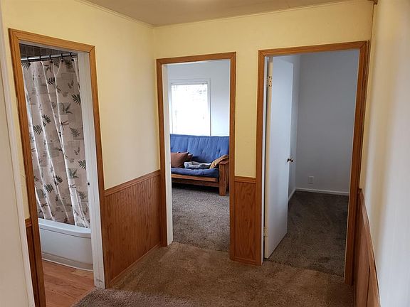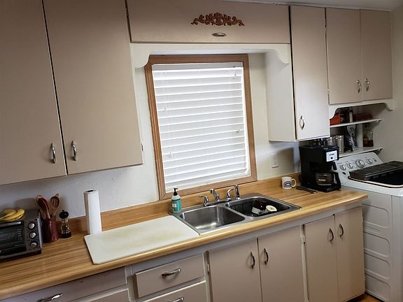 Charming 2 bedroom home nestled behind a fully fenced yard. Fresh interior paint, newer appliances, one garden beds, two storage sheds, carport and a large garage with wood stove. Long-life metal roof and metal siding. Gas stove in living room, updated vinyl windows, fire pit, and horseshoe pit.
