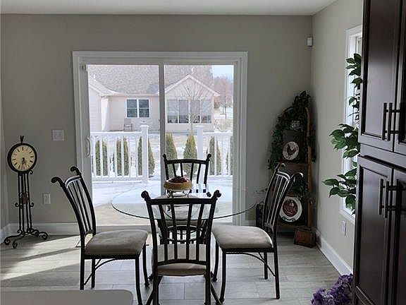 Cozy yet spacious 2 bedroom 2 bath with open floor plan. Large greatroom open to dinette and kitchen with island seating.Opn stairway with wrought iron spindles to large partial bsmnt. First floor laundry. Nice covered porch off dinette. High eff furnace and AC. Windows with low E glass and argon gas, tilt top & bottom for cleaning. Sprinkler , alarm. Perfect home for one or two!! Move-in ready!!