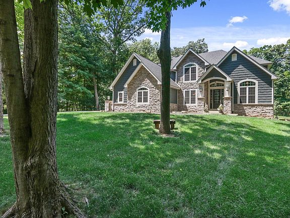 At the end of a winding, wooded drive rests a one-of-a-kind property showcasing an ideal floor plan upon 10 serene acres. An impressive greeting is given by soaring ceilings & striking hardwoods throughout. A fabulous gourmet kitchen will inspire your inner chef w/ stainless appliances, large island, coffee bar & beautiful finishes.The open concept great room features stunning wood beams & a cozy fireplace.Just adjacent, enjoy a wonderfully light & bright sunroom w/ amazing views.A spacious dining w/ gorgeous millwork is ideal for entertaining.The main floor is completed by a convenient main floor office, laundry, & mudroom w/ drop zone.Upstairs, the generous primary bedroom features a must see en-suite & an over-sized walk-in closet.The first guest room has a private bath, while the other 2 share a jack-n-jill bath, & all feature walk-in closets.The unfinished daylight basement offers endless opportunity for expansion/storage.All of this on 10 private acres - this home is a rare find!