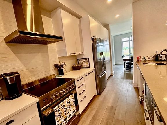 Ottawa, Viscount Alexander Park. Welcome to this spacious and beautifully maintained 2-bedroom, 2.5-bathroom executive Townhouse. Available August 1st. Owners plan to return to the property on August 1st, 2026 Ideal for families or professionals, this home for rent offers comfort, functionality, and stylish finishes throughout. The main floor features rich hardwood flooring, a convenient foyer with lots of cupboard space, and a bright open-concept living/dining area. The eat-in kitchen is a chef's delight with ample countertops, a large breakfast island with double sinks and stainless steel appliances (fridge, stove, dishwasher, microwave). Upstairs, the spacious primary bedroom includes a walk-in closet and a luxurious ensuite with a stand-alone shower. The second bedroom is generously sized. A second-floor laundry room adds everyday convenience. The finished lower level offers ample space for a family room, office, or recreation area. The basement offers tiled flooring. Hot water tank rental is extra @ $65/month. Step outside to a fully fenced backyardperfect for relaxing or entertaining. Additional features are Central Air and Double Car Garage. Quick access to HWY, transit, schools, and shopping.