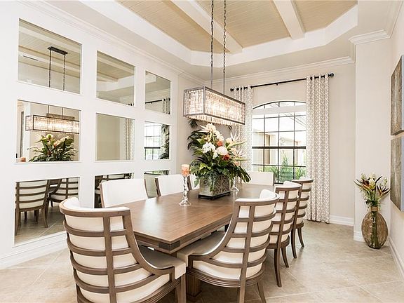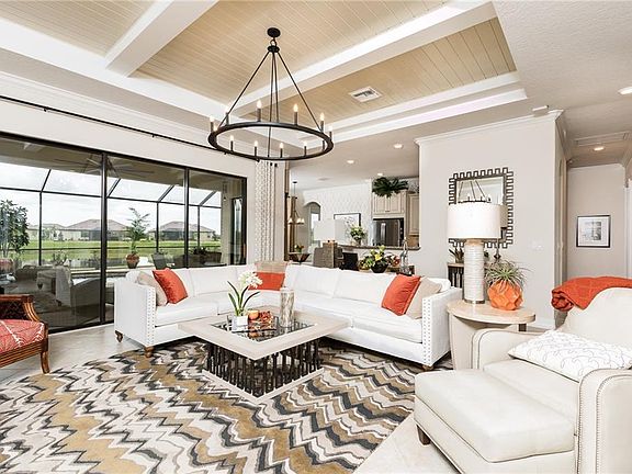 Opportunity Strikes--Back on Market! Entertain in Grand Style w/ this Professionally Decorated & Maintenance Provided FORMER MODEL HOME! Built in 2017, the "Napoli" embodies a Masterful Design & Modern Luxury that exudes comfort & convenience. The Substantial Pyramidal Chandelier, which casts soft ambient light through the great room, illuminates several prominent design features. Highlights include tray ceilings w/ cross beams & decorative wood paneling, a custom crafted multi-mirrored feature wall, tailor-fitted drapes, 20" inch Porcelain Tile & Crown Molding. The large triple glass sliders offer a glimpse of the expanded Lanai & Outdoor Kitchen w/ Decorative Stonework, which opens into a large Salt Water Pool & Spa area & Lake View. The Kitchen Amazes, & includes Staggered 42 inch Hazelnut Cabinetry w/ Crown, Upgraded S/S Appliances, Premium counters, & adjoining Breakfast Nook. Design highlights synchronously extend to the den & Owner's Retreat too, where cross beams, wood paneling, custom trim work, and gorgeous drapes steal the show. As one of only a LIMITED number of homes in River Strand w/ a Side Load Garage, this home's Unique Value Proposition is clear. The question is--will it be yours? Ownership includes a Golf & Social membership w/ a 27 hole Arthur Hills Designed Championship golf course, 2 Clubhouses, tennis club w/ 8 lighted Har-Tru courts, pickle ball, resort style pools, 2 fitness centers, & restaurant. Close to the beaches & a quick commute to Sarasota, St. Pete, & Lakewood Ranch!