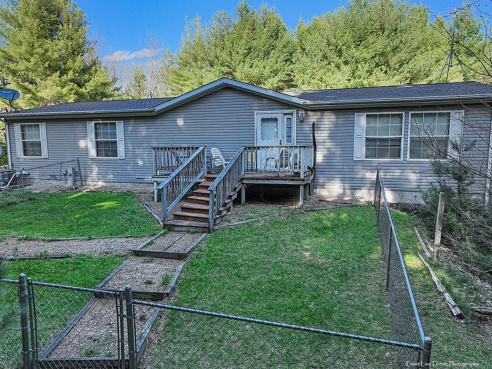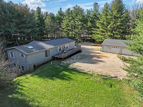 As you are driving thru the county road you will come up to a small forrest of lush pine trees with a small opening which will be your driveway. Drive thru the tunnel of pine up to you new home. Pull into your 3+ car detached garage and then enjoy the short walk up the deck into you home. You will find 3 beds and a 2 bath house all laid out on one floor. As you enter the master, your mind will be blown at the size as it is spacious and has a sitting room along with a large walk in closet. Enjoy a relaxing evening in the large jetted tub! Not a tub fan, No worries as we also have a separate shower with new shower head. Love to cook, This open and airy kitchen offers copious amounts of counter space and an island complete with electric. This is located right off the dining room and living to you are never disconnected from the party. Need some storage? Head on down to the full unfinished basement for a massive storage area. Love to enjoy the outdoors? Sit out back on the spacious deck and watch the wildlife emerge from the 5 acres of pine forest. Make this slice of heaven your home today!