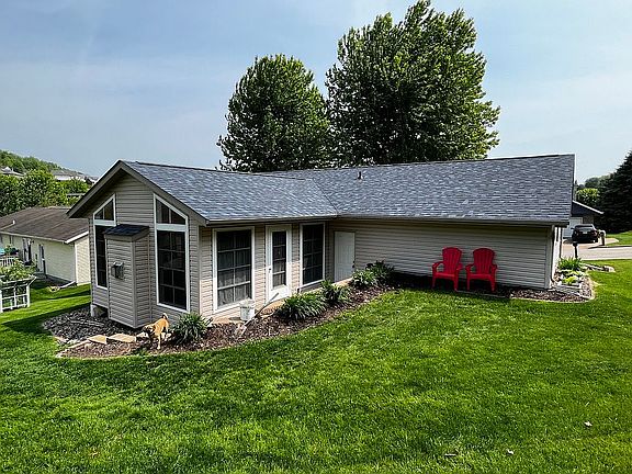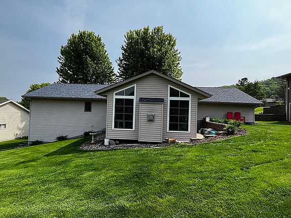 Beautifully maintained, fully refurbished, three bedroom home with an open floor, plan and attached two car garage for sale in LaCrescent Minnesota. Recent addition of a beautiful 17 x 17 sunroom adds ample space and sunlight. The sunroom has a vaulted ceiling, a gas fireplace and many large windows. This home was built in 2003 and is a part of a 20 home HOA with a low monthly fee that covers weekly lawn care and snow removal. A new 30 year roof was replaced in 2021. The kitchen and upstairs bathroom have been remodeled. Other improvements include environmentally safe LVP flooring, added throughout the main level, carpet replaced in the master bedroom, and the lower level, new Pella windows, new water heater, new quartz countertops, and glass tile backsplash, new stove, microwave and refrigerator. Located on a quiet cul-de-sac within a block to a large community park, with access to hiking trails. Two producing apple trees are located in the backyard and two large maple trees provide cooling shade for the front yard in the summer. The living room, kitchen and dining area lead out to the large sunroom. Also, on the main floor is a bedroom, the laundry room, a full bathroom with a large, soaking tub, the master bedroom with a large walk-in closet. The finished walkout basement has a large bedroom, a large family room with a gas fireplace, a full bathroom, and a large bonus room for storage and/or a workout space. Great views of the surrounding valley. Please call for an appointment. 507-450-6053