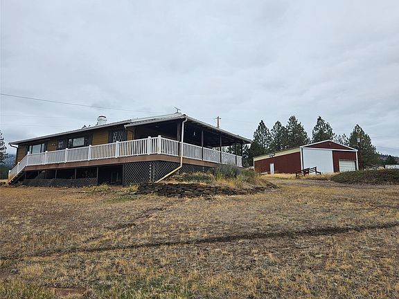 Perched on the hillside overlooking the town of Hot Springs, Montana with breath-taking views in all directions and great neighbors on every corner. This property offers the perfect blend everyone is looking for. Over a 1/2 acre yard with mature trees and landscape. A spacious covered front porch that wraps around the side to enjoy entertaining or just the tranquil relaxing views of "Big Sky Country". The generous home encompasses a spacious 2688 square feet, plenty of space for family gatherings or just cozy evenings spent in front of the fireplace. A large 28 x 40 garage/shop space along a workspace or just extensive storage with an asphalted parking area just in front of the garage/shop. This property is awaiting its new owner.