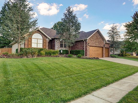 Welcome to this Beautiful home located in one of Nixa's most desirable communities - The Springs. This 3 Bedroom, 2 Bath split plan has so much to offer: extra large lot that is fully irrigated, 3 car garage with wifi garage doors & cabinetry that stays, gorgeous covered back patio overlooking your private back yard--all on a private cul-de-sac! Very well-maintained home with updates: 2 year old roof, 5 year old HVAC, kitchen updates including quartz countertops with tile backsplash and all stainless appliances. The warm wood tones blended with modern gray paint and white accents provide a comfortable atmosphere throughout the entire home. Architectural details include arch doorways & window, double-sided stone fireplace, tray & cathedral ceilings and wood trim wall accents. And the covered outdoor patio--what a wonderful place to relax and enjoy the private backyard. Bonus: the refrigerator says, as well as the patio shade. Your new home is move-in ready and just waiting for your finishing touches! Don't miss out!