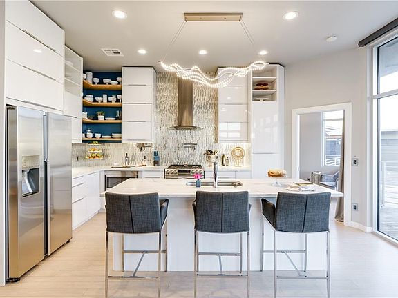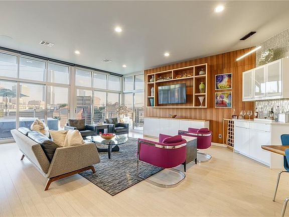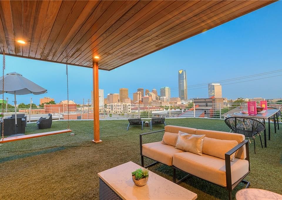 Modern luxury with unmatched expansive 270 degree views of Downtown Oklahoma City's skyline. Constructed with careful attention to detail to maximize light exposure and views of the cityscape. Beautifully appointed with exquisite furnishings, custom treatments and curated art. With three levels of outdoor living space, entertaining your friends and family year round will enhance your active lifestyle. The ground floor includes an indoor sauna, sport pool, hot tub and a covered patio with an outdoor living area and television. The main living space on the second floor opens to a wrap around teak patio complete with an outdoor grill and beverage center. The appx 1,800 sq foot roof top is the crown jewel of SoSA with 240 sq ft of covered patio and 1,560 sq ft of open air sundeck. Watch the sun rise and set over downtown in one of the most unique homesites ever built in Oklahoma City. Fully furnished and ready for you to live your best life!