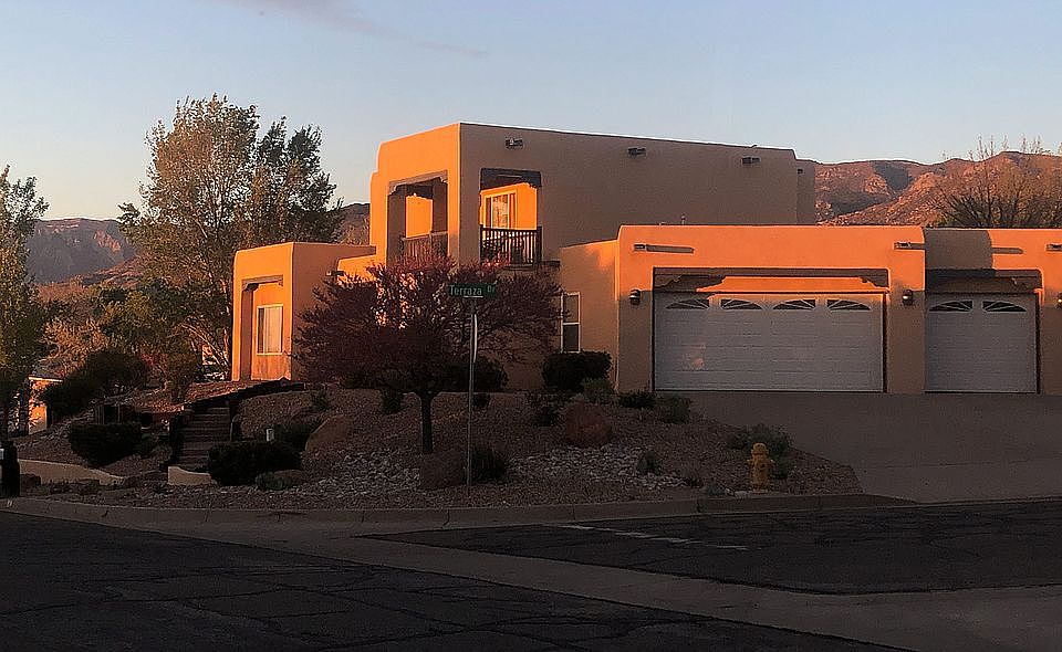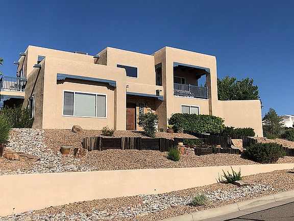 This gorgeous quality custom home is located on a large corner lot (1/3 acre) in a private and quiet section of Four Hills Subdivision in Albuquerque with Country Club, pool, golf/tennis courts. It is built on an elevated, treed lot with fabulous mountain and city views from two balconies and yard. Home and grounds are meticulously maintained with resort-style back yard, waterfall, flower gardens, and space available for a vegetable garden.