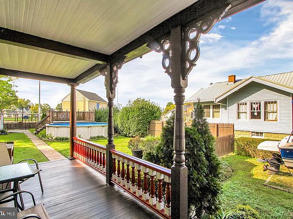 Welcome to 614 Otsego St in lovely Perryville where pride of homeownership shows! 1884 sq of finished space. Enjoy the relaxing lifestyle that Perryville offers. Inviting covered porches to the front and the side of the house greets you. Large family and dining room with gleaming hardwood floors that continues up to the second floor. Dining room with built-in cabinetry for additional storage and a pellet stove. Beautiful paint throughout. Tons of natural sun light in every room. Main level renovated kitchen with tiled floor, SS appliances and 42 inch cabinets. Walk-in pantry in the kitchen. Walk-out to the side porch from the kitchen. Enjoy the convenience of a main level laundry area with a half bath. Second floor with 3 bedrooms and a full bathroom. The unfinished upper 3rd level has a ton of possibilities for you to create another master bedroom and en-suite, office or recreation room of your choice. Fenced backyard with large shed/work show and above ground pool with a deck. This home still has the charm of its age with the benefits of several upgrades. Easy commute to Rt 40 and I95 between Baltimore & Wilmington, walking distance to Amtrak/MARC train stop. Beautiful Community Park and Public Boat ramp access minutes away. Close to APG. It is the lifestyle you do not want to leave. Schedule a showing today!