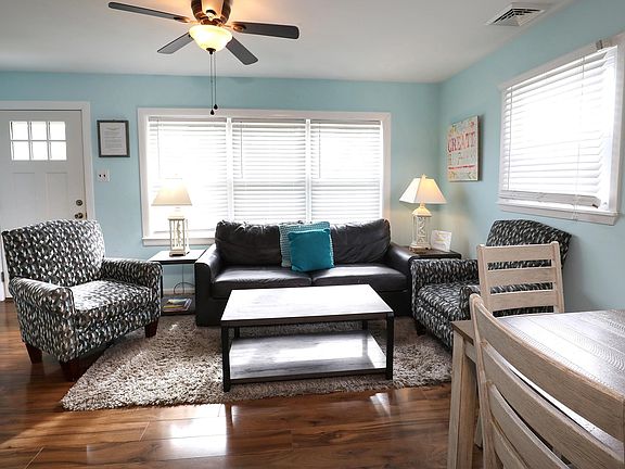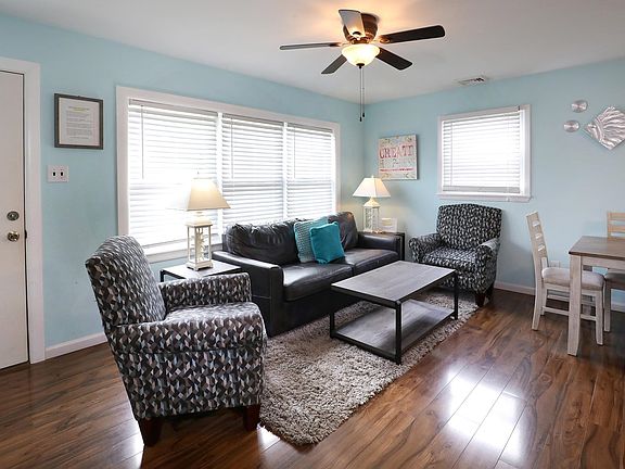 Pack your clothes and move right in! This adorable North Cape May Cottage two small blocks from the bay is perfect for a starter home, family vacation home, or bayside rental. Being sold fully furnished you just need your personal items to feel at home. This 3 bedroom, 2 full bath home has the cutest bunk room and two other large bedrooms one with an ensuite bath with access to the outdoors, perfect for the addition of a pool in the back. The large back yard is fully fenced and boasts a concrete patio, outside shower, and gas grill. The expansive storage shed with finished floor makes the perfect place to hide all of your beach needs and bikes to cruise the bayfront.