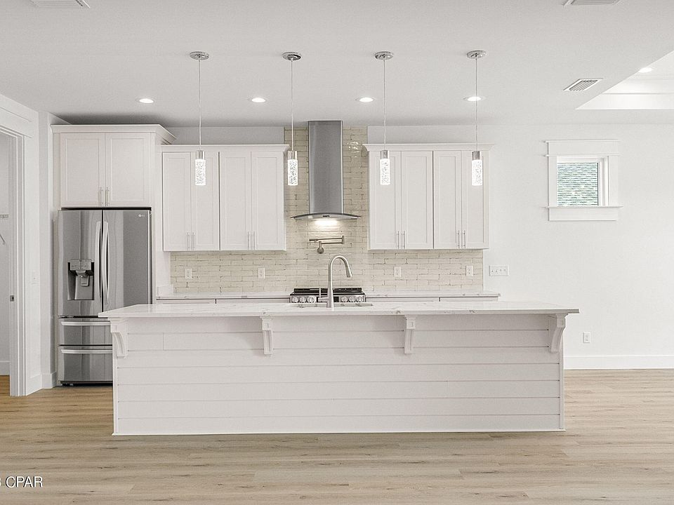 Brand-new home nestled in the tranquility of West End Panama City Beach. Enjoy the peaceful ambiance of one of the area's quietest streets while relishing in the convenience of being mere minutes from the Publix shopping center and the vibrant dining and shopping scene of 30A. This impeccable 3- bedroom, 2.5-bathroom residence showcases modern amenities designed for comfort and efficiency. Inside, the spacious interior features lofty 9-foot ceilings, complemented by elegant 8-foot doors.